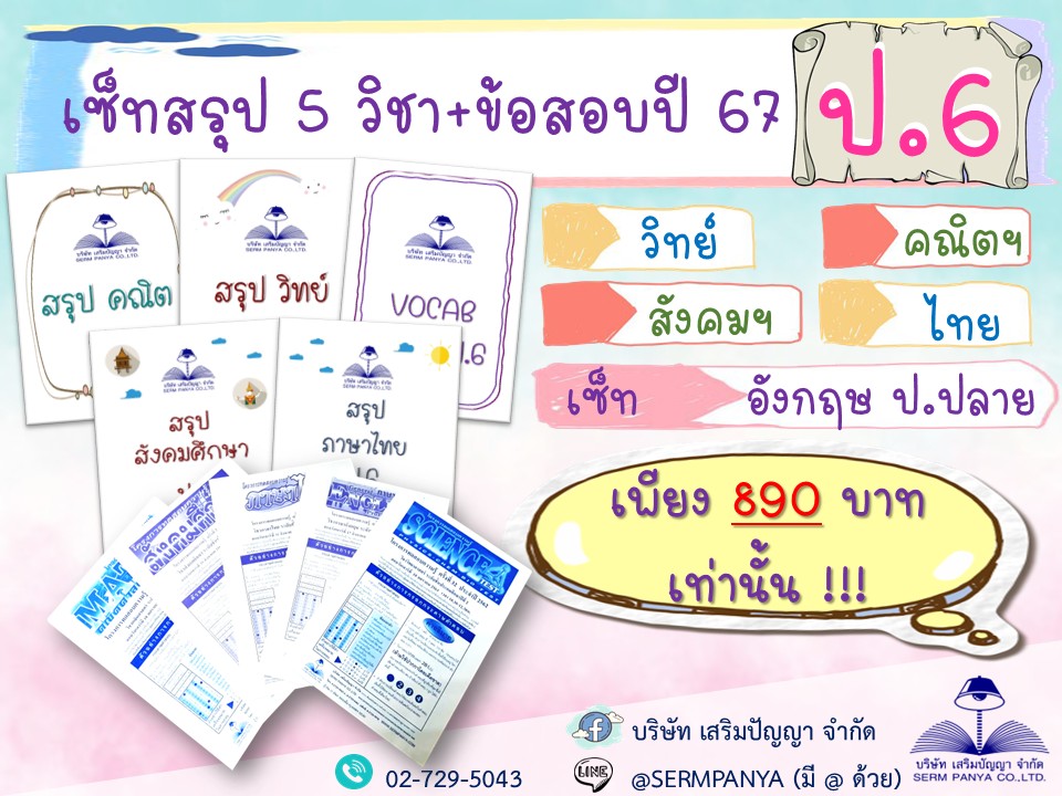 สั่งซื้อข้อสอบและสรุปเนื้อหาระดับชั้นและวิชาอื่นๆ คลิก https://sermpanya.com/spymarket/storefront/product?cat=0&course=5&level=0&sorttype=0&sortfield=0&txtsearch=