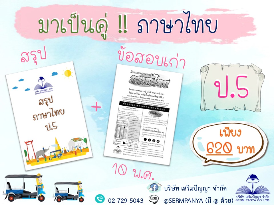 สั่งซื้อข้อสอบและสรุปเนื้อหาระดับชั้นและวิชาอื่นๆ คลิก https://sermpanya.com/spymarket/storefront/product?cat=0&course=5&level=0&sorttype=0&sortfield=0&txtsearch=