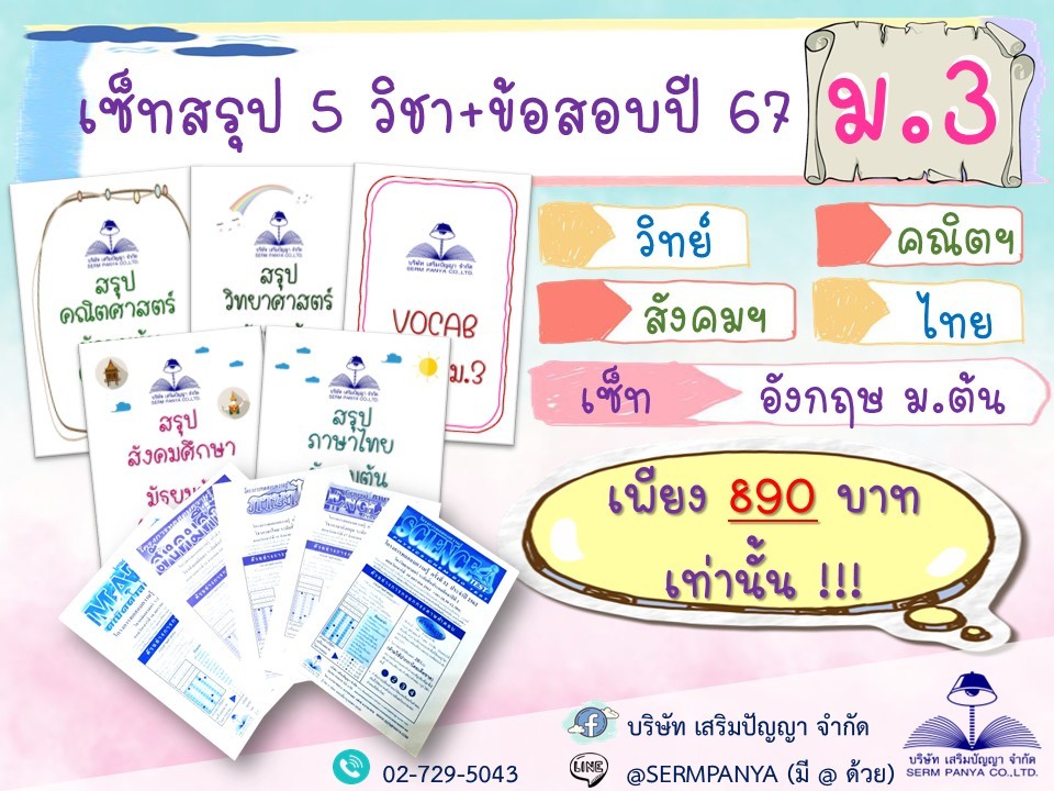 สั่งซื้อข้อสอบและสรุปเนื้อหาระดับชั้นและวิชาอื่นๆ คลิก https://sermpanya.com/spymarket/storefront/product?cat=0&course=5&level=0&sorttype=0&sortfield=0&txtsearch=