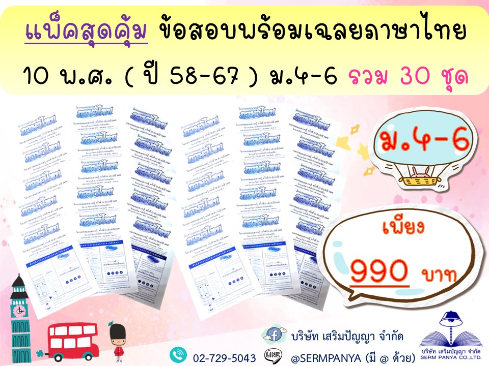 ข้อสอบพร้อมเฉลยละเอียดภาษาไทย 10 พ.ศ. ม.4-6 รวม 30 ชุด ปีการศึกษา 2558-2567 สุดคุ้ม!!!