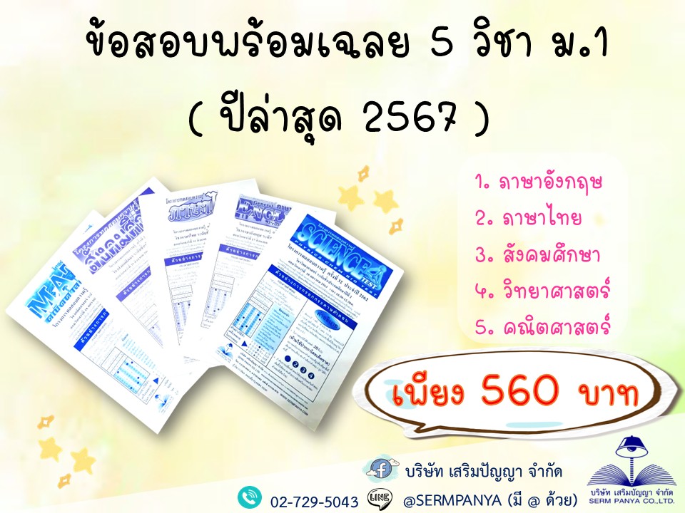 ข้อสอบพร้อมเฉลยละเอียด 5 วิชา ปี 67 ม.1 ประกอบด้วย